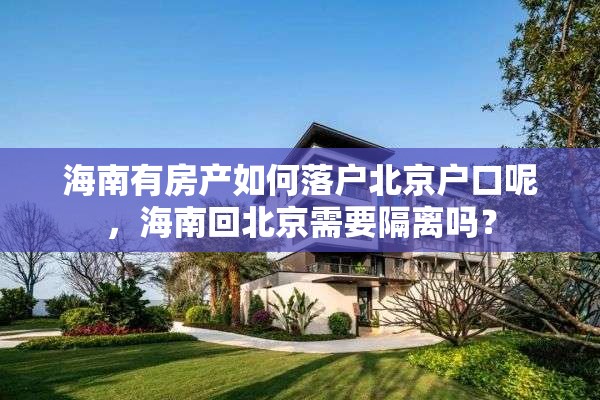 大家好,今天小编关注到一个比较有意思的话题,就是关于海南有房产如何落户北京户口呢的问题,于是小编就整理了1个相关介绍海南有房产如何落户北京户口呢的解答,让我们一起看看吧。