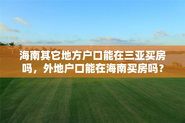 大家好,今天小编关注到一个比较有意思的话题,就是关于海南其它地方户口能在三亚买房吗的问题,于是小编就整理了3个相关介绍海南其它地方户口能在三亚买房吗的解答,让我们一起看看吧。