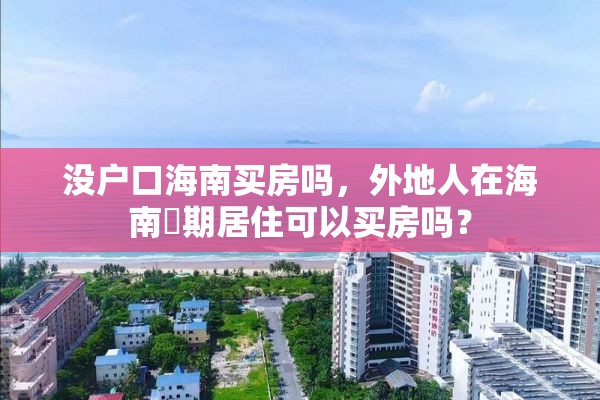 大家好,今天小编关注到一个比较有意思的话题,就是关于没户口海南买房吗的问题,于是小编就整理了1个相关介绍没户口海南买房吗的解答,让我们一起看看吧。