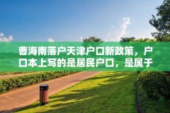 大家好,今天小编关注到一个比较有意思的话题,就是关于曹海南落户天津户口新政策的问题,于是小编就整理了2个相关介绍曹海南落户天津户口新政策的解答,让我们一起看看吧。户口本上写的是居民户口,是属于城镇户口...