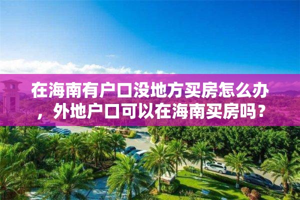 大家好,今天小编关注到一个比较有意思的话题,就是关于在海南有户口没地方买房怎么办的问题,于是小编就整理了2个相关介绍在海南有户口没地方买房怎么办的解答,让我们一起看看吧。