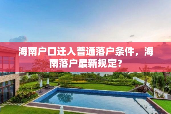 大家好,今天小编关注到一个比较有意思的话题,就是关于海南户口迁入普通落户条件的问题,于是小编就整理了3个相关介绍海南户口迁入普通落户条件的解答,让我们一起看看吧。